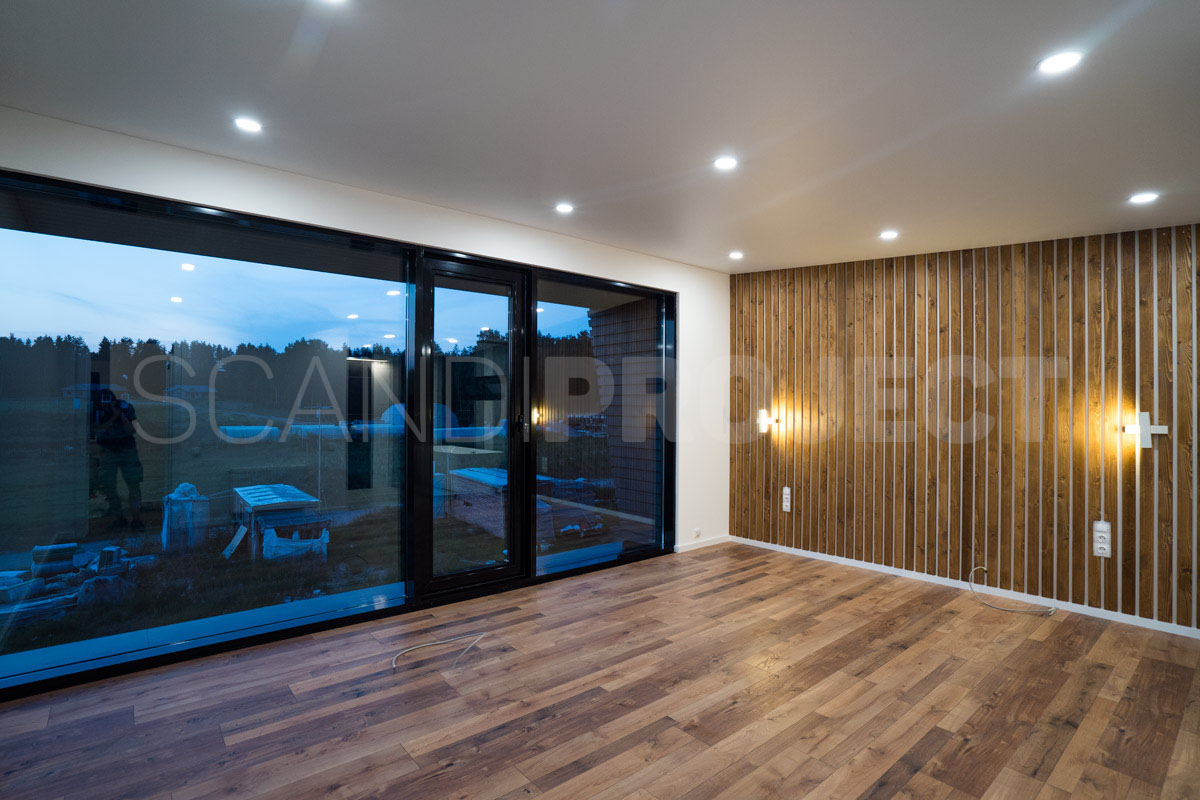 Наружная отделка стен – прогрунтованные и окрашенные сухие строганые ламели хвойных пород, лиственницы.