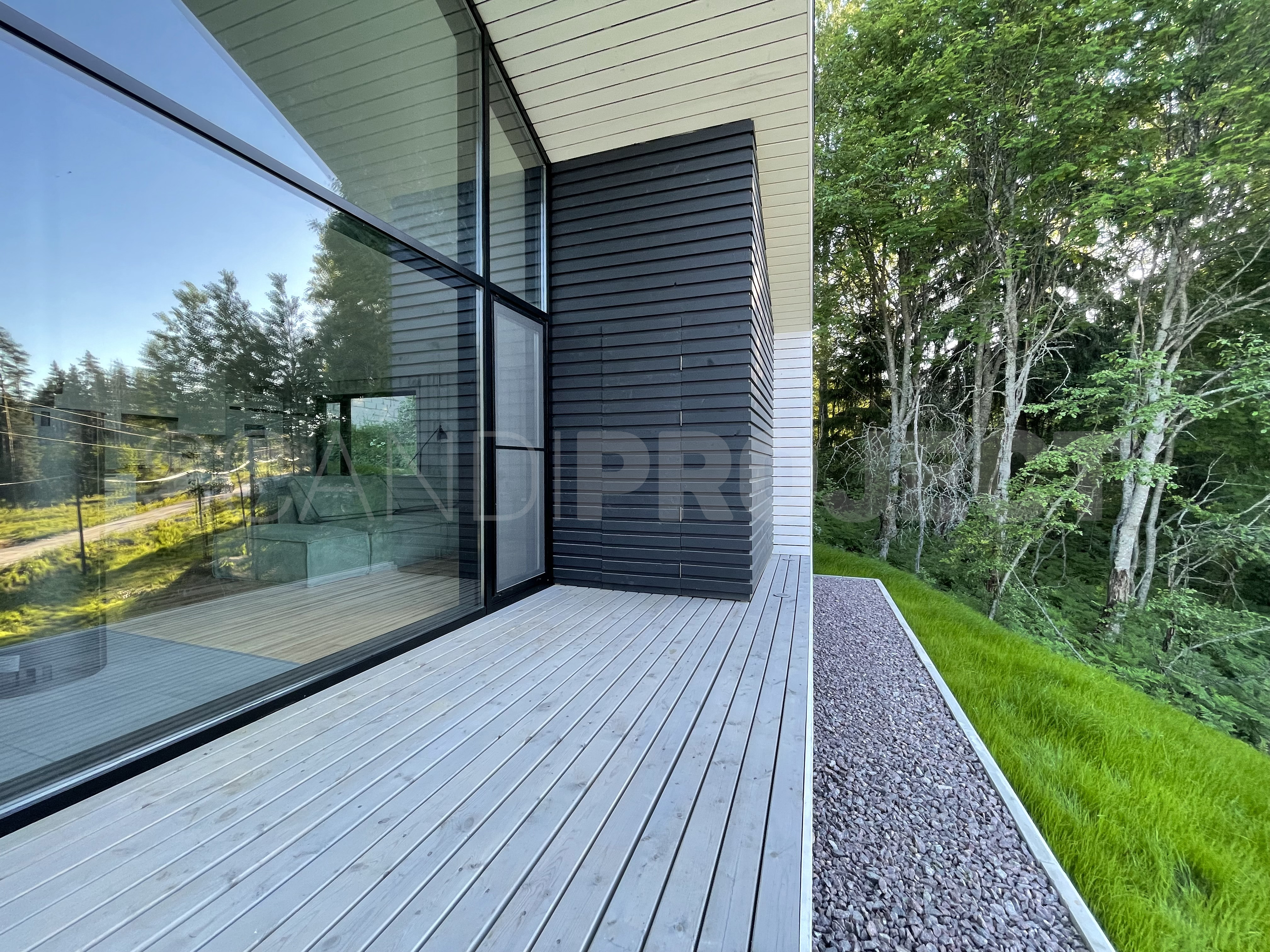 Наружная отделка стен – прогрунтованные и окрашенные сухие строганые ламели хвойных пород, лиственницы.